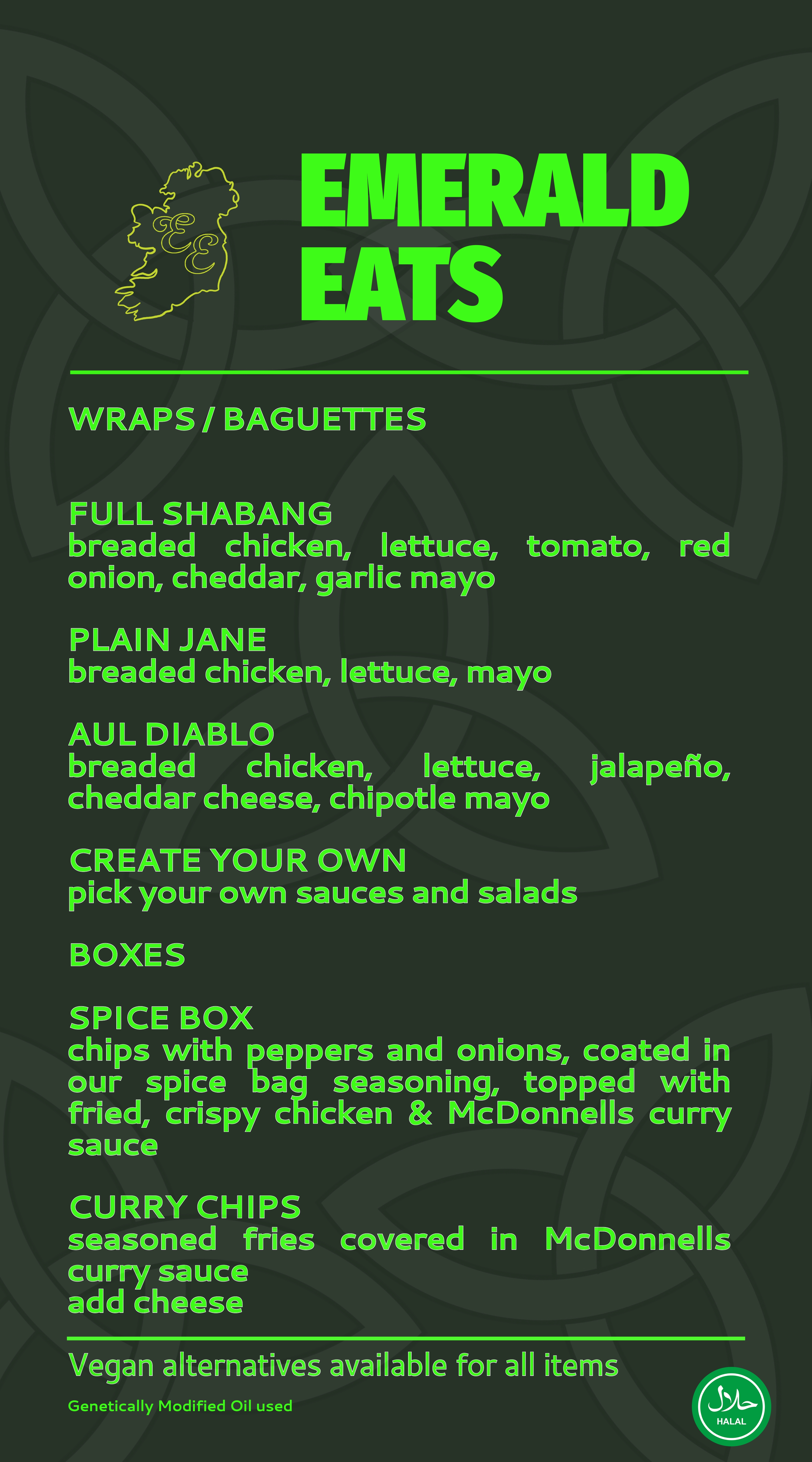 Emerald Eats was born out of a magical moment at the London Irish Centre when Emma, our founder, overheard the staff saying the only thing you couldn’t find in London was a chicken fillet roll. She only knew their pain too well, and decided if you want something done right, you have have to do it yourself.